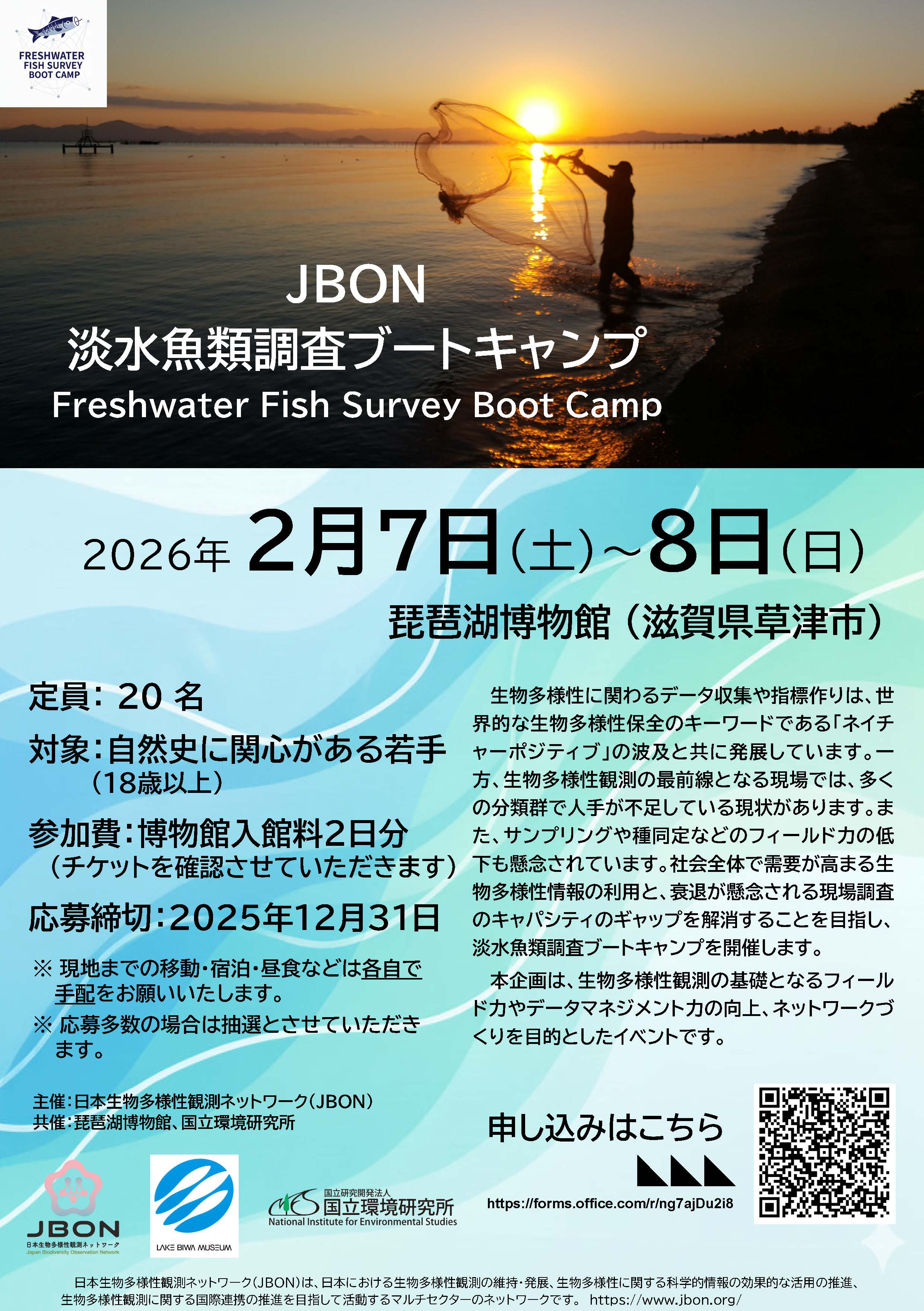 JBON 淡水魚類調査ブートキャンプ 開催します!