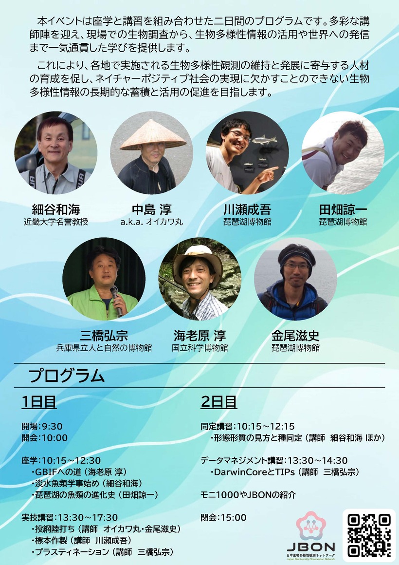 本企画は、生物多様性観測の基礎となるフィールド力やデータマネジメント力の向上、ネットワークづくりを目的としたイベントです。