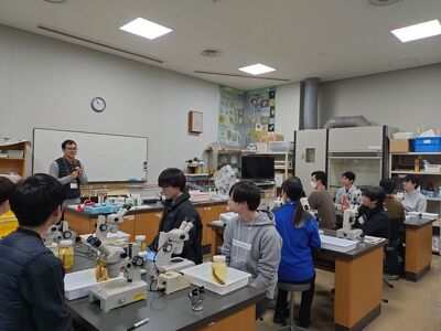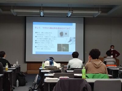 講義2「淡水魚類学事始め」では、生物の採集記録のみならず周辺環境や景観レベルでの観察の重要性、その記録方法を学びました。さらに、形態観察の基本となる骨格構造や外部形質、発生学的背景に至るまで、魚類学の基礎を体系的に理解しました。